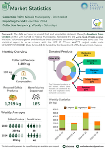 At Zero Food Waste Cyprus, we sort the donated fruits and vegetables into categorised bins which get weighed and stored on our database. Here we present an overview of our statistics. For a more detailed version, please get in touch with us.